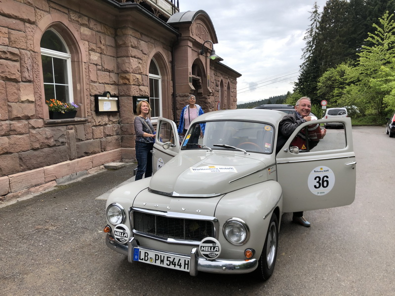 Auf nach Freudenstadt in den Schwarzwald zur 20. ADAC Württemberg Historic 2019 am 17. und 18. Mai 2019. Gemeldet waren wir mit dem roten Austin Healey 100, Baujahr 1954.Nach dem vielversprechenden Start auf eigener Achsei in Ludwigsburg war allerdings schon nach ca. 20 Kilometern Schluß – Leistungsverlust, lautes Motorgeräusch, Leerlaufproblem – Benzinpumpe oder Vergaserproblem? Also Huckepack mit dem ADAC zurück nach Ludwigsburg und Re-Start mit dem Buckelvolvo PV 544, der uns dann ohne Probleme bis Freudenstadt in unser „Baustellen“ Hotel Fritz Lauterbad gebracht hat. Es war insgesamt ein schönes Oldtimer Rallye Wochenende mit Hindernissen. Zwei Rallyetage mit schönem Wetter, ca. 60 Gleichmäßigkeitsetappen und einer Gesamtstrecke lt. Bordbuch von insgesamt 489,18 km. Die Rallye war hervorragend organisiert und führte uns auf wunderschönen Nebenstrecken durch den Schwarzwald! Leider versemmelten wir zwei Sonderprüfungen und somit mussten wir uns mit Platz 58 zufrieden geben.